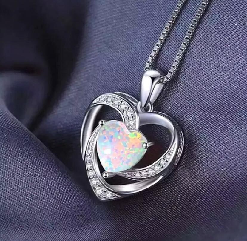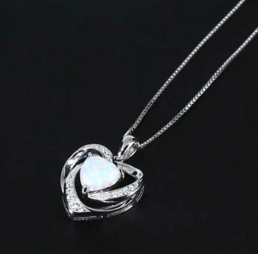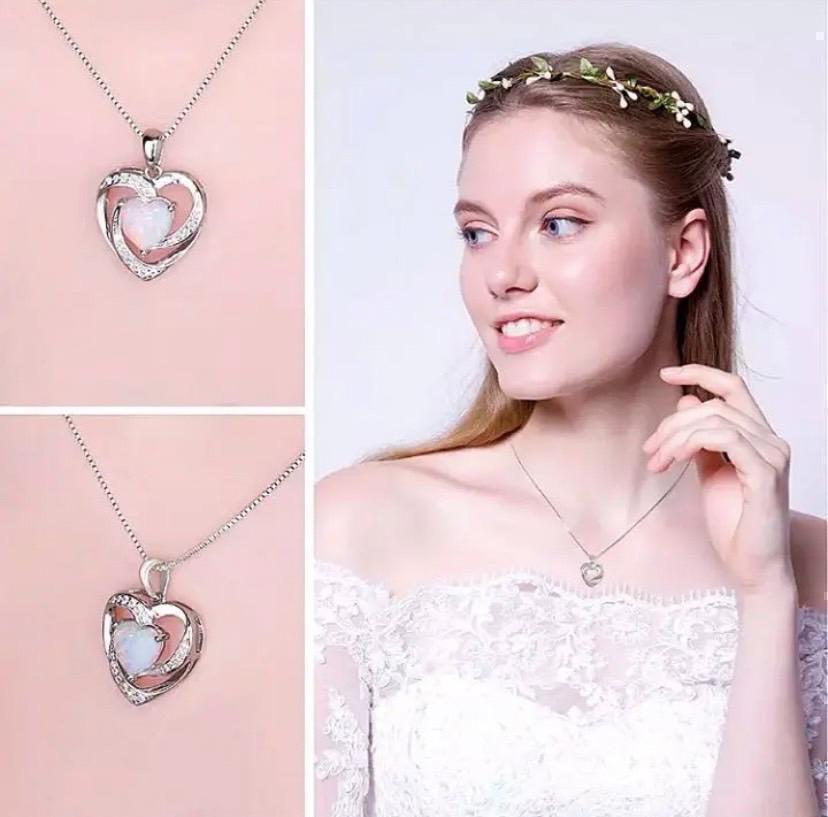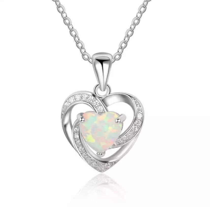 372 シルバー ハート ネックレス オパール czダイヤ 結婚式 ジルコニア ジュエリー アクセアリー