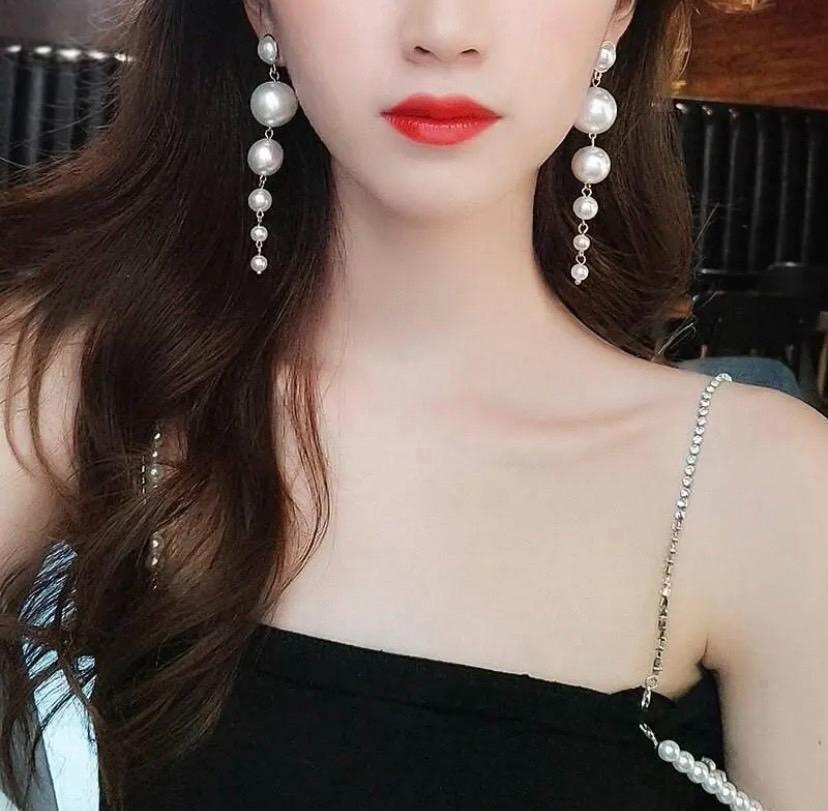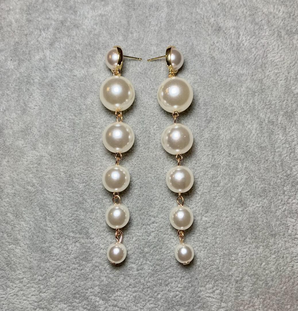 409 ゴールド パール ピアス 6連 大粒 ドロップ ジュエリー アクセアリー 結婚式 ドレス