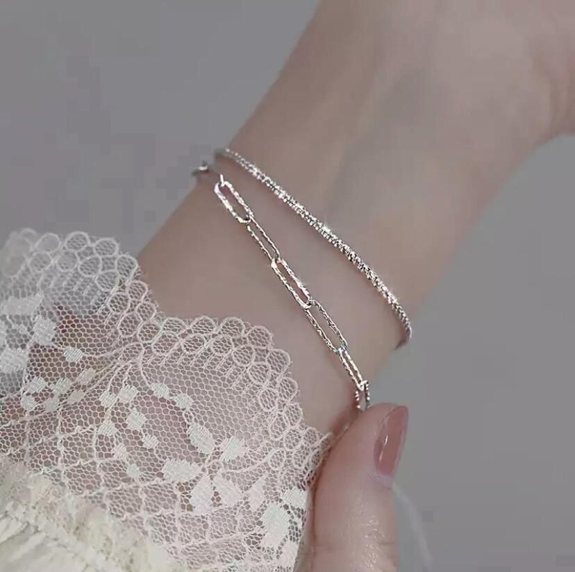 608 2点セット シルバー ブレスレット s925 バングル 韓国 ジュエリー アクセサリー