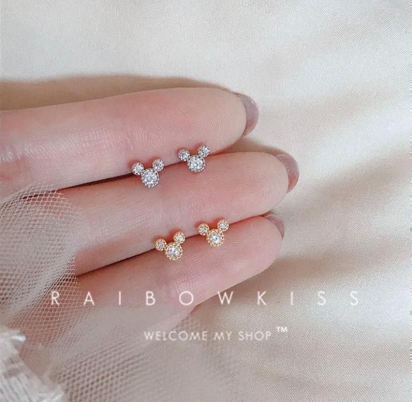 254 ゴールド ピアス s925 czダイヤモンド ミッキー 好きに ジルコン
