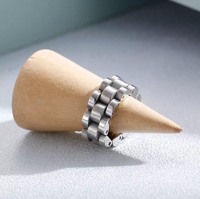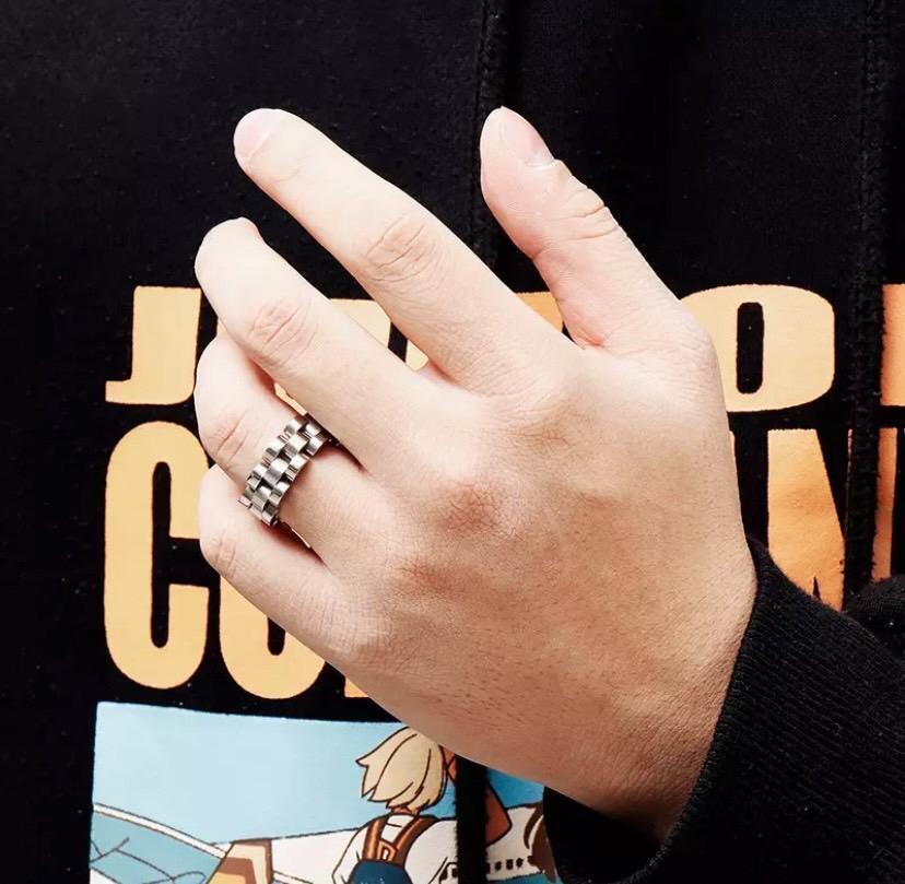 377 シルバー ベルト リング 316L Ssteel 男女兼用 ロック 韓国