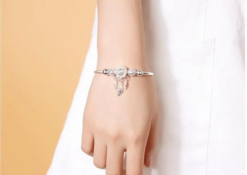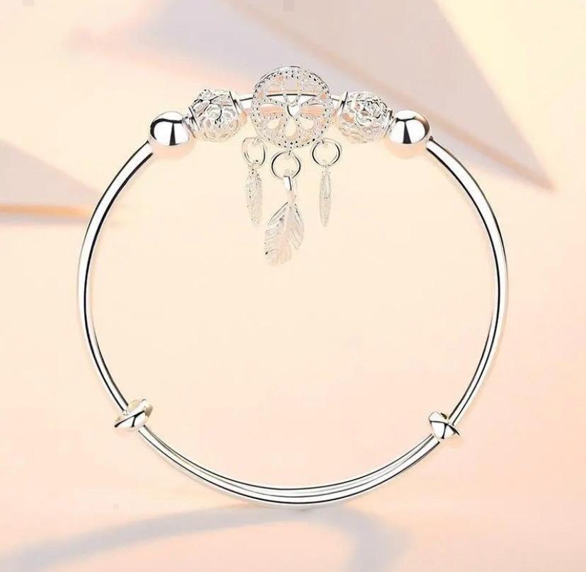 バングルには ドリームキャッチャー のデザインが印象的なシルバーバングル♪
