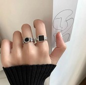 81♦新品♦指輪 silver925 2点セットブラック 女性 リングインポート