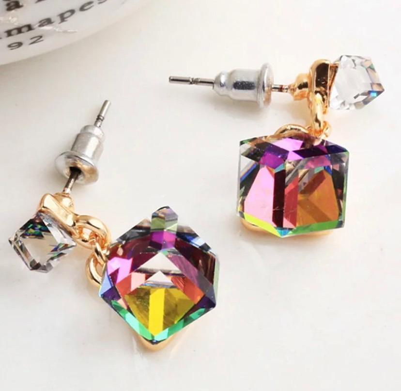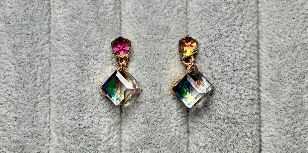 553 ゴールド トルマリン ピアス s925 レインボー 虹色 男女兼用 韓国