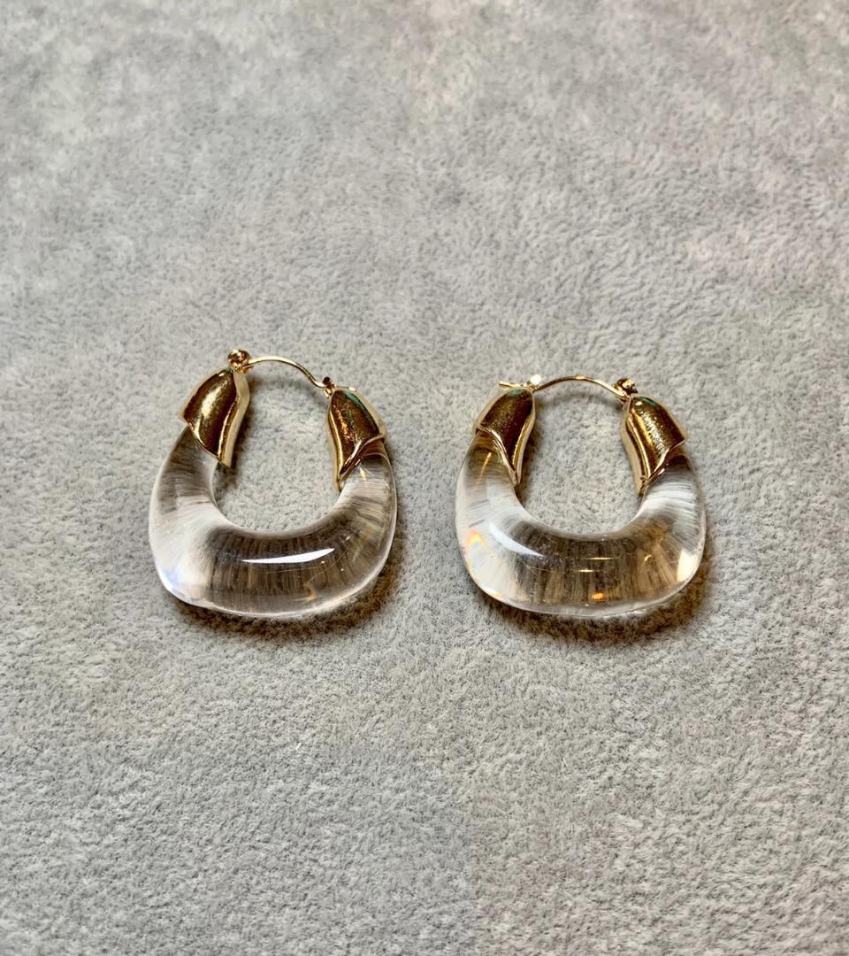 クリアパーツが涼しげで印象的なピアスです♪