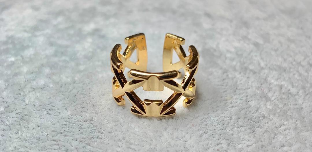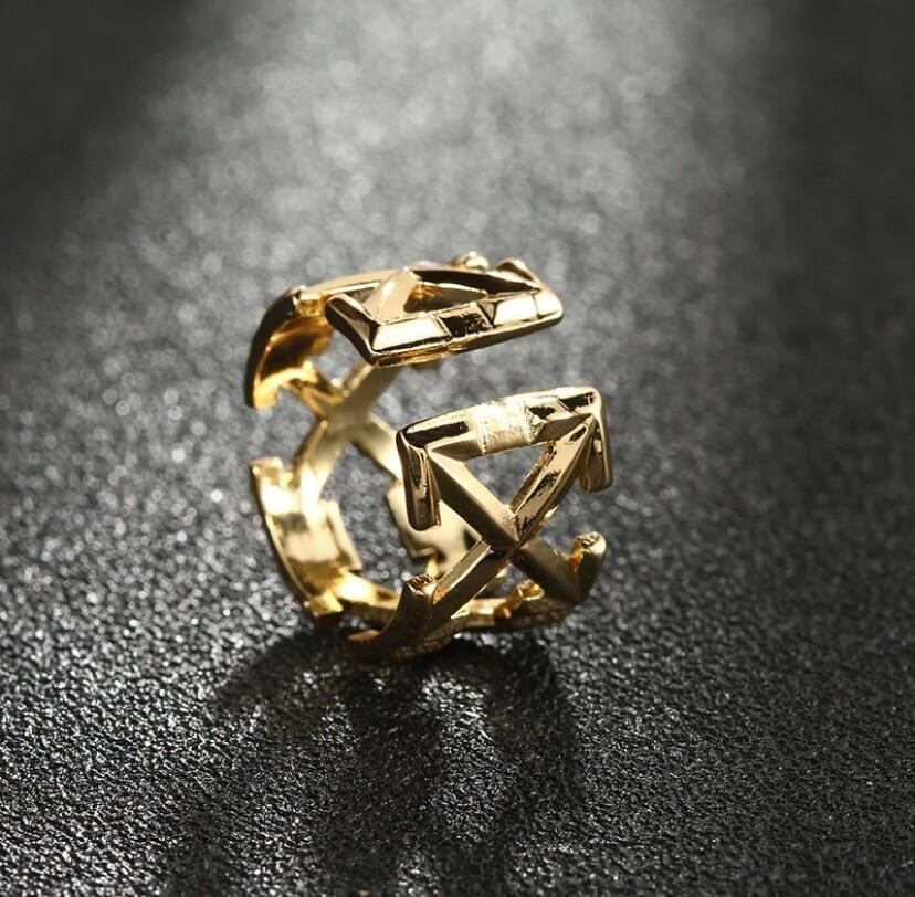 111 ゴールド リング S925刻印 四方 矢印 アロー Xデザイン 槍 釘