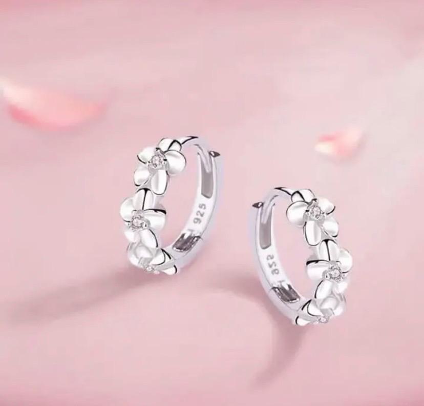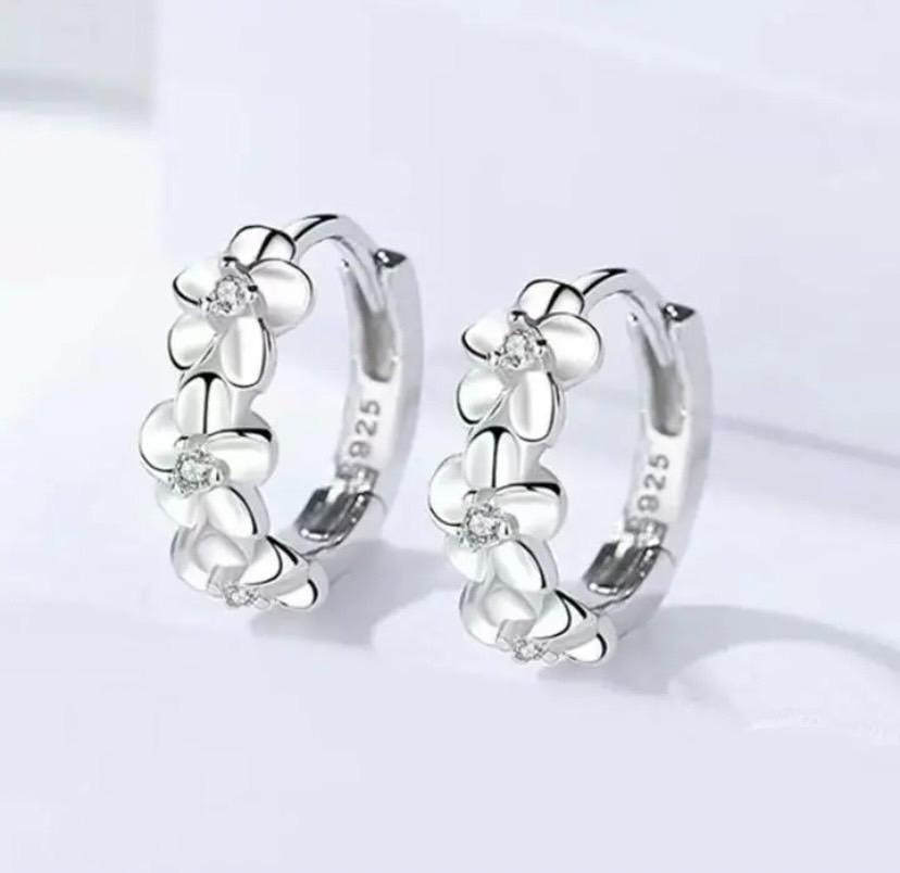 441 シルバー フラワー ピアス s925 czダイヤ ハワイアンジュエリー