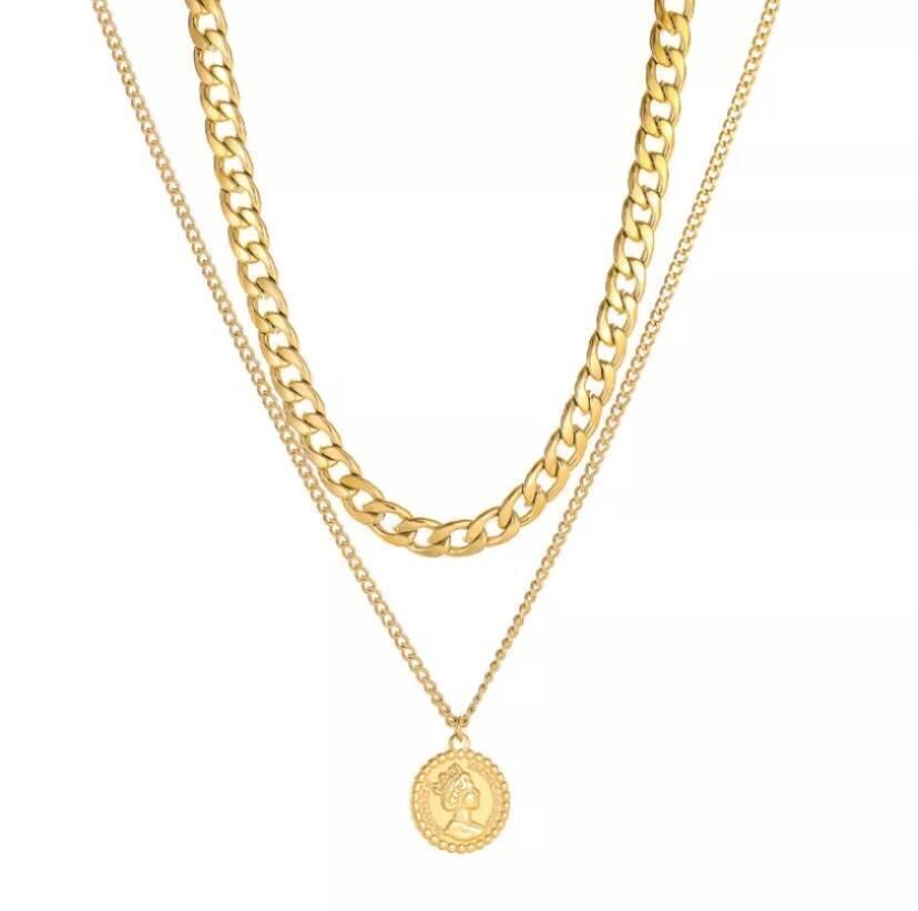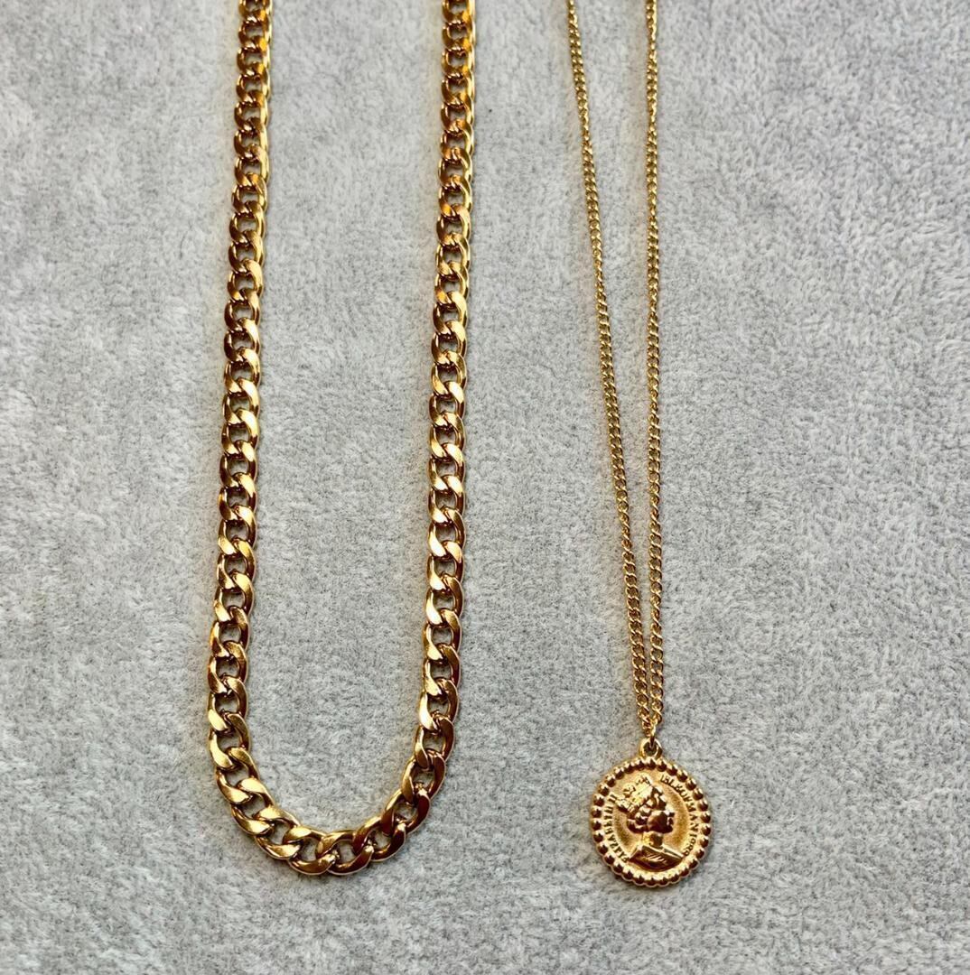 467 2点セット ゴールド ネックレス コイン チェーン 金 ジュエリー 韓国