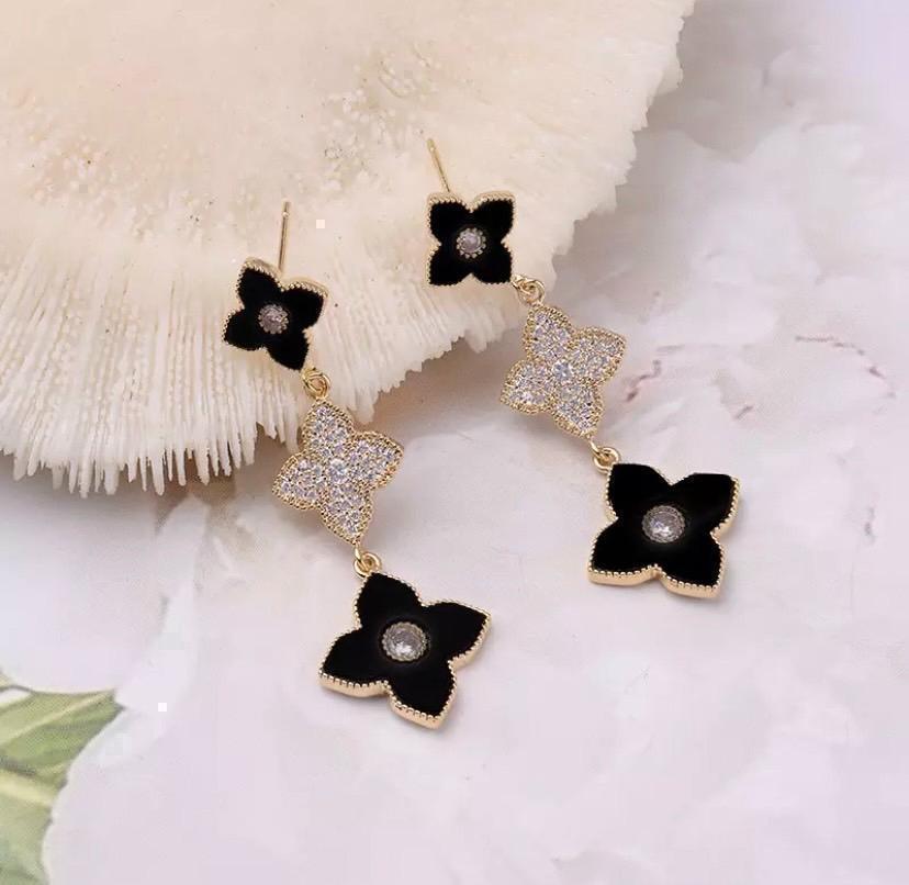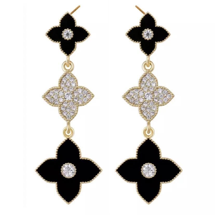 煌めくダイヤで繋いだ高級感のあるブラッククローバーがクラシカルなピアスとなっております♡