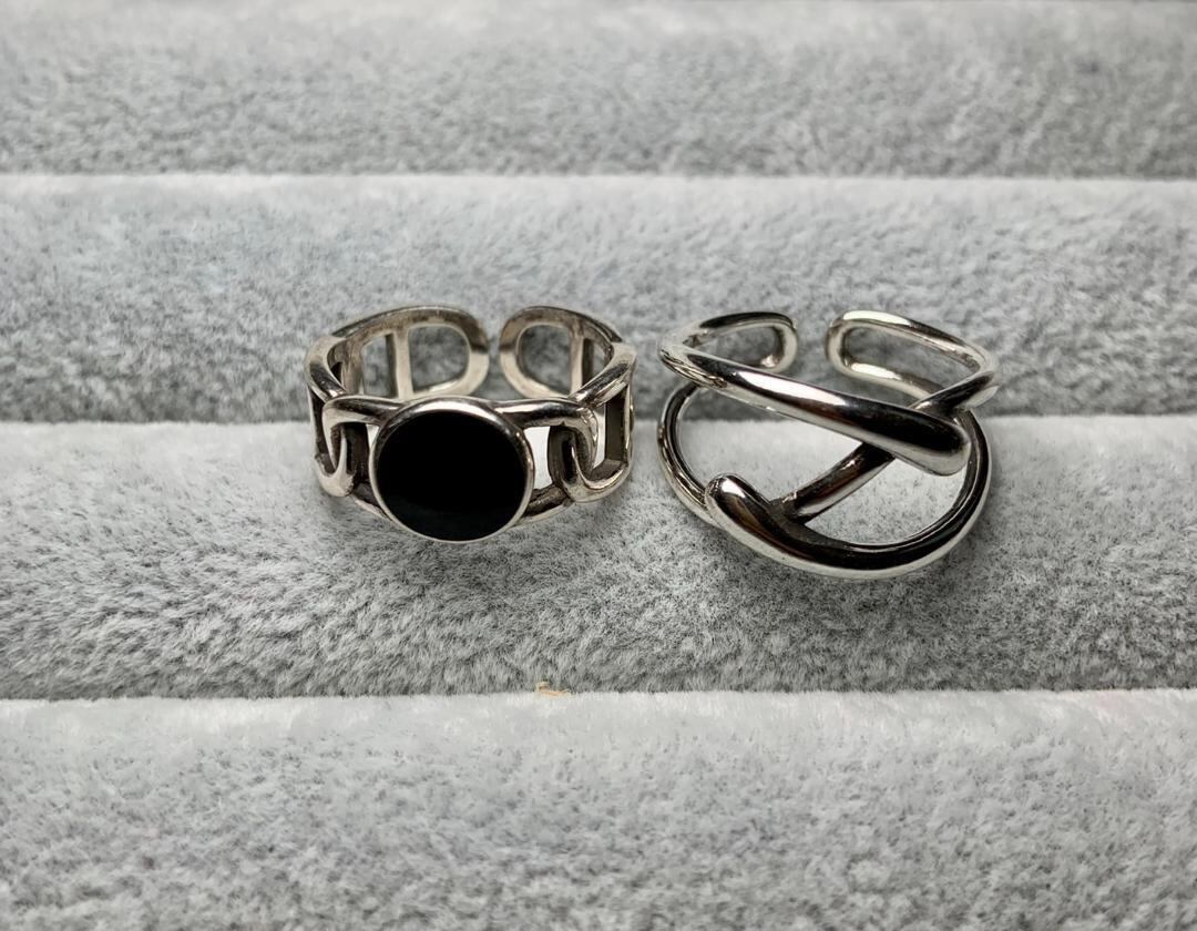 190 指輪 silver925 2点セットブラック 女性 リングインポート