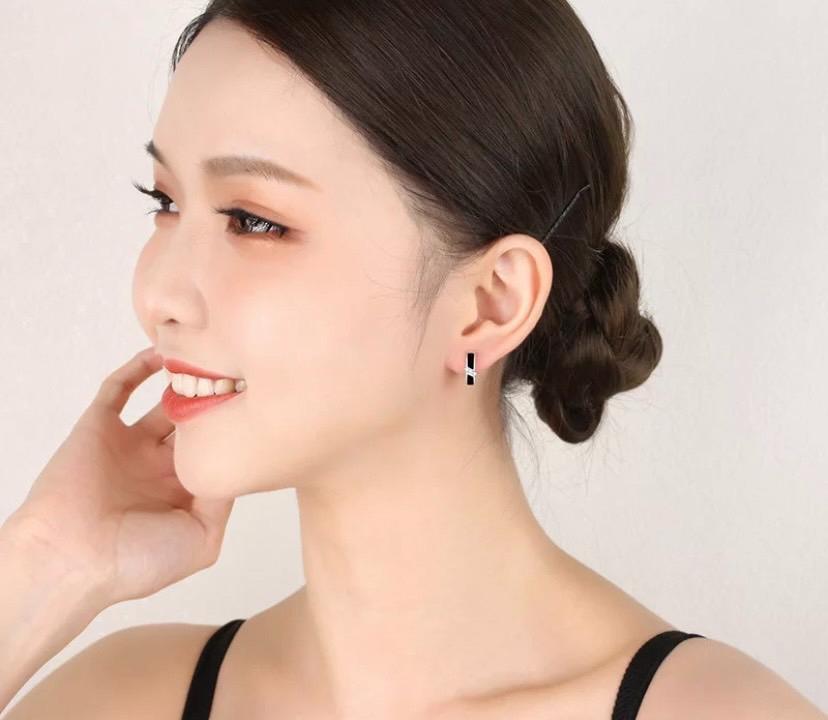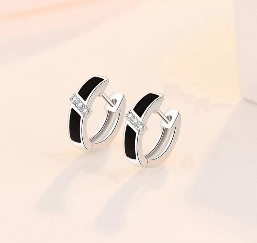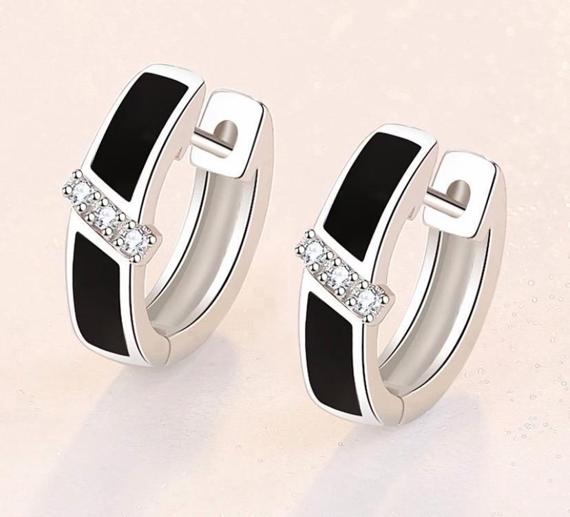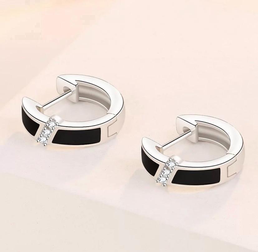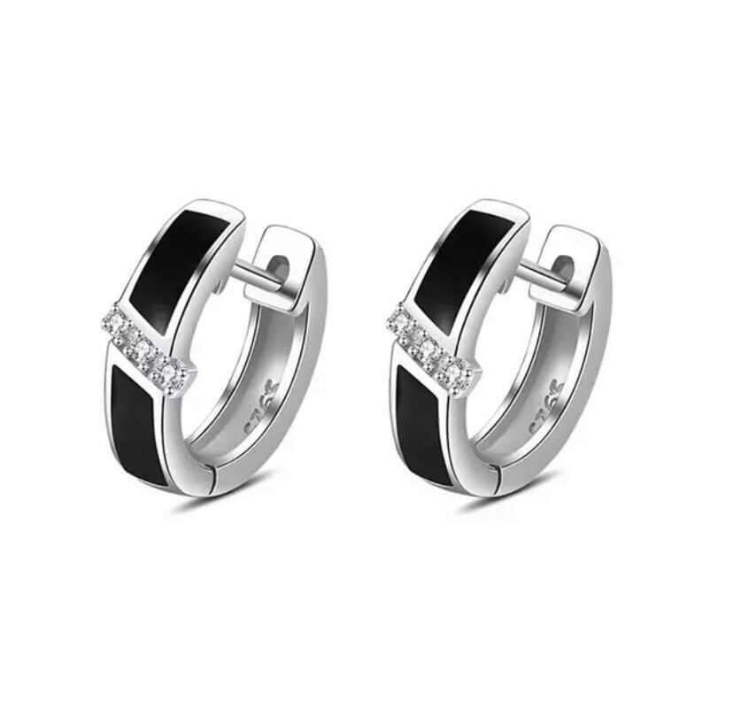 652 シルバー ピアス s925 czダイヤモンド フープ ブラック ジルコン
