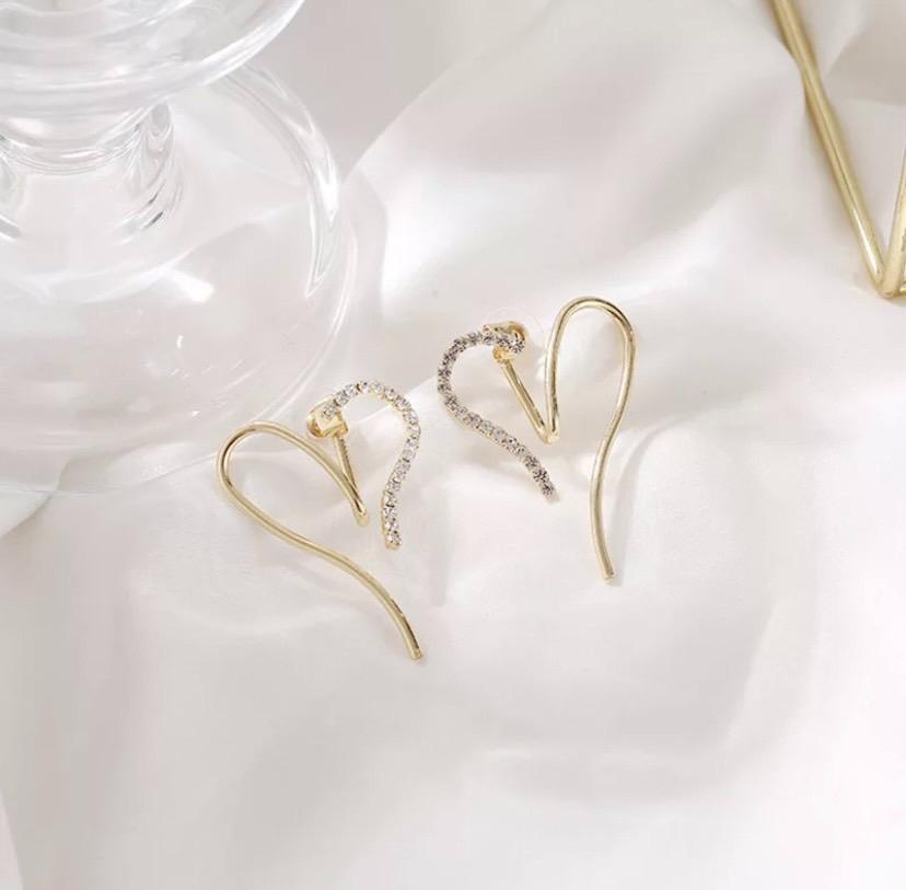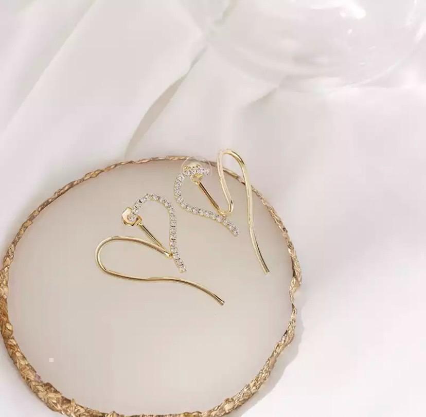 568 ゴールド ハート ピアス czダイヤモンド ジルコニア 韓国 ブライダル