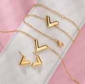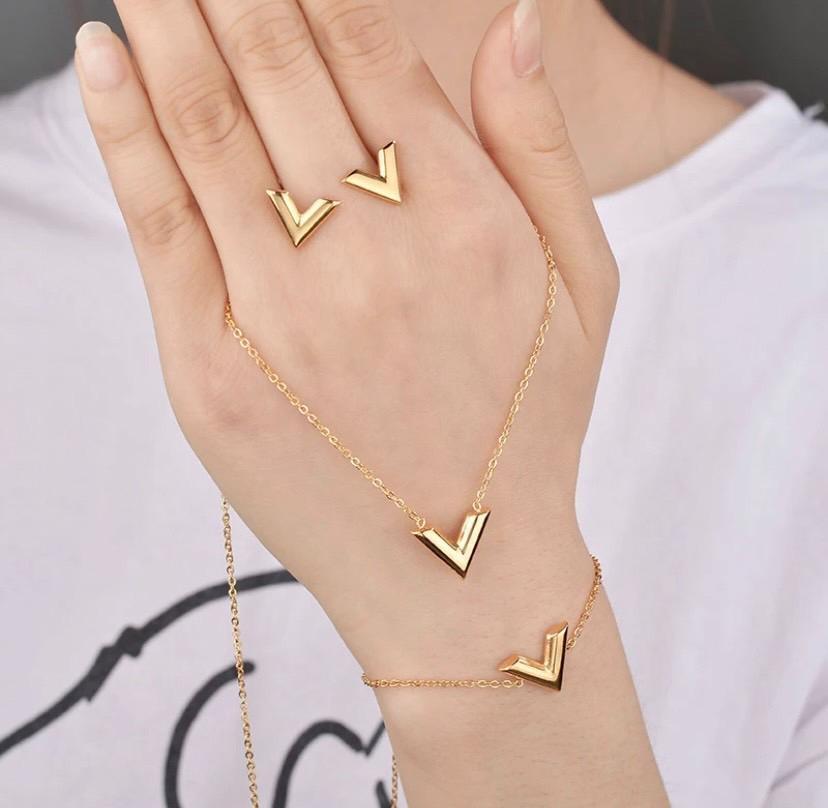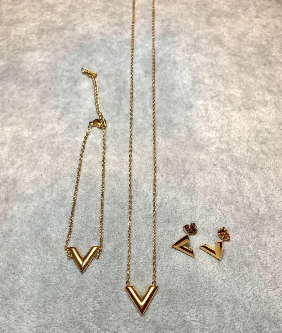 766 3点セット ゴールド ネックレス ブレスレット ピアス V字 調整可